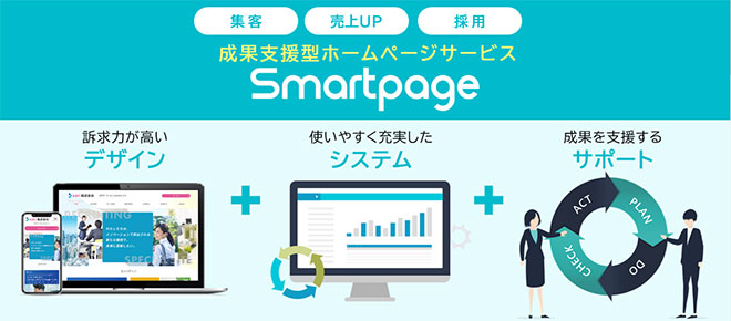 ホームページ作成サービス「Smartpage(スマートページ)」は「今すぐホームページを立ち上げたい」「更新は自社で完結したい」――そんな中小企業の現場ニーズを起点に設計された、実務重視のホームページCMSです。